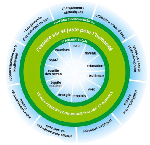 Il propose une économie circulaire et durable qui respecte les limites planétaires tout en permettant à chaque personne de satisfaire ses besoins fondamentaux, tels que l’eau, la nourriture, l’énergie, la santé, l’éducation et les droits sociaux.
